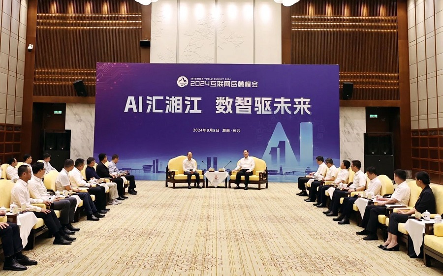 8日下午,省委副書記、省長毛偉明與華為輪值董事長徐直軍等來湘出席2024互聯(lián)網(wǎng)岳麓峰會的嘉賓代表座談。