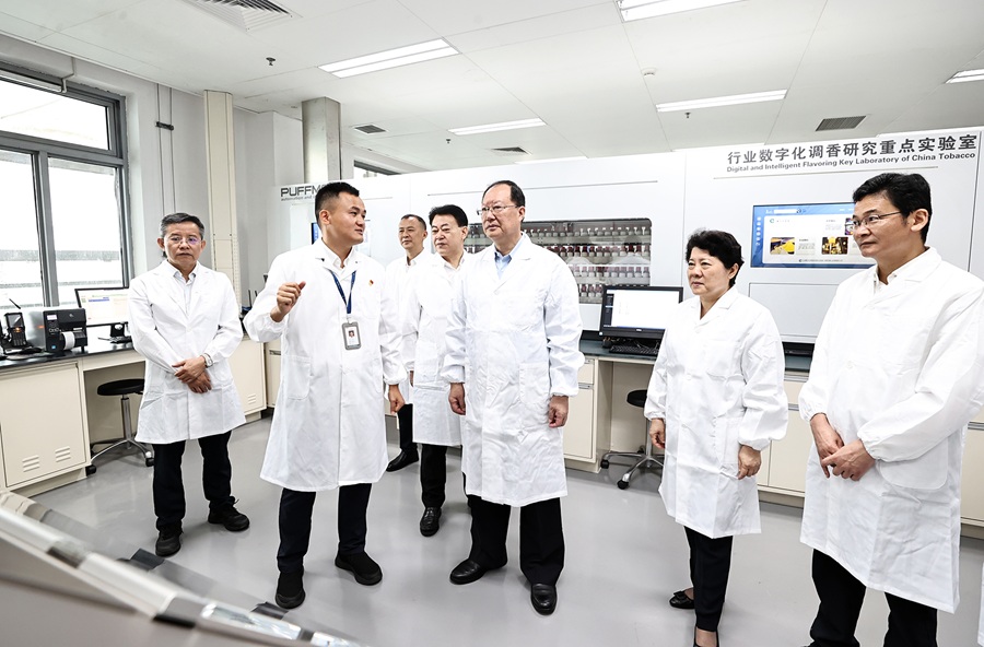 毛偉明在湖南中煙技術(shù)中心調(diào)研。