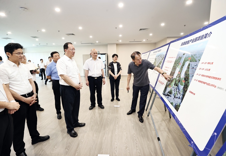 毛偉明在潤(rùn)澤數(shù)智產(chǎn)業(yè)園調(diào)研。