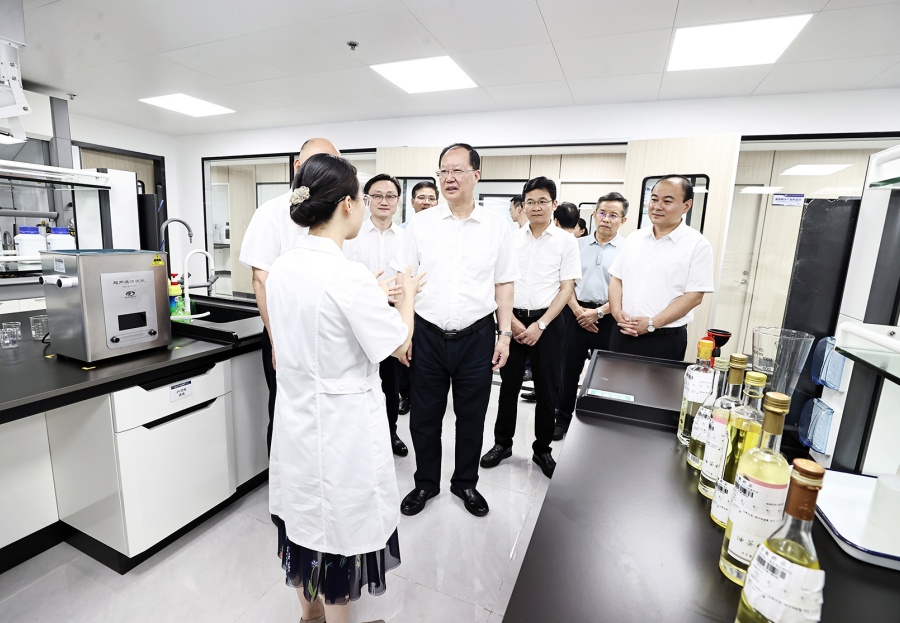 毛偉明在國(guó)家油茶產(chǎn)品質(zhì)量檢驗(yàn)檢測(cè)中心調(diào)研。