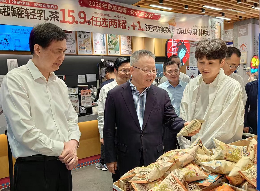 零食很忙和茶顏悅色都是長(zhǎng)沙本土品牌,深受年輕消費(fèi)群體喜愛。沈曉明來到五一商圈,走進(jìn)零食很忙旗下的“零食很大”主題門店、茶顏悅色旗下的“咫尺山林”概念門店,了解企業(yè)品牌打造、零售模式創(chuàng)新及多元化發(fā)展等情況,鼓勵(lì)創(chuàng)新打造更多年輕人喜愛的消費(fèi)場(chǎng)景,滿足消費(fèi)者個(gè)性化多樣化的消費(fèi)體驗(yàn),同時(shí)要始終把食品安全作為企業(yè)發(fā)展的生命線,讓消費(fèi)者買得放心、吃得安心。