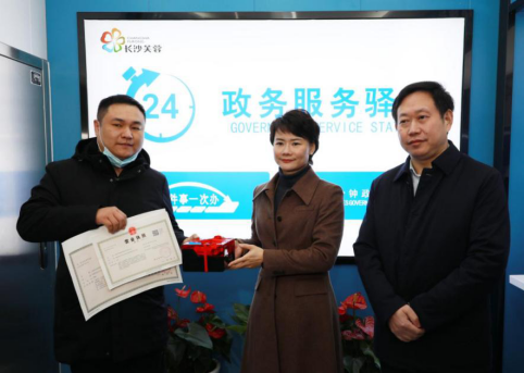 長(zhǎng)沙市芙蓉區(qū)在中國(guó)農(nóng)業(yè)銀行政務(wù)服務(wù)驛站發(fā)放第一張營(yíng)業(yè)執(zhí)照。