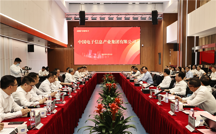 5月31日下午,毛偉明在深圳市與中國(guó)電子信息產(chǎn)業(yè)集團(tuán)有限公司黨組書記、董事長(zhǎng)曾毅座談。