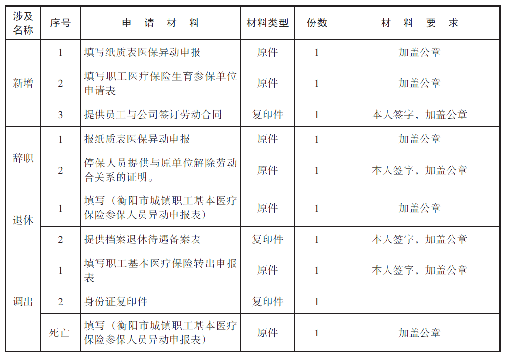 三、辦理事項:城鎮(zhèn)職工醫(yī)療保險參保單位人員異動辦理