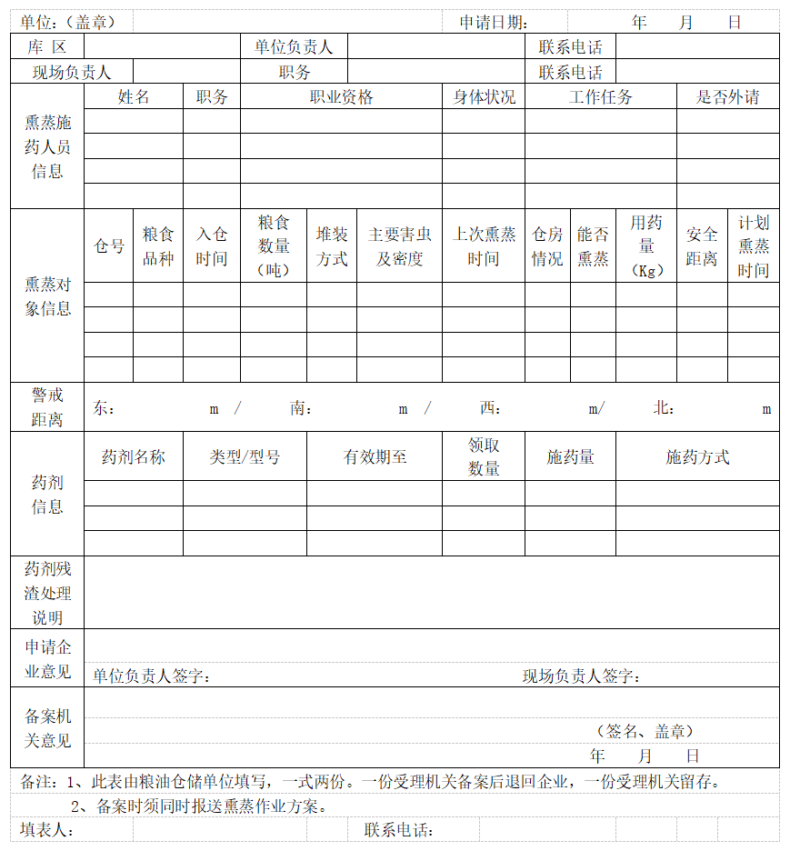 (一)《湖南省糧油倉儲單位儲糧熏蒸方案備案申請表》