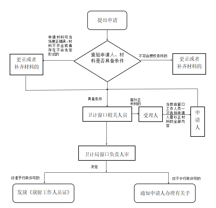 審定合格的,負責人簽署同意意見,核發(fā)《放射工作人員證》;對不符合法定條件、標準的簽署不予許可的意見。