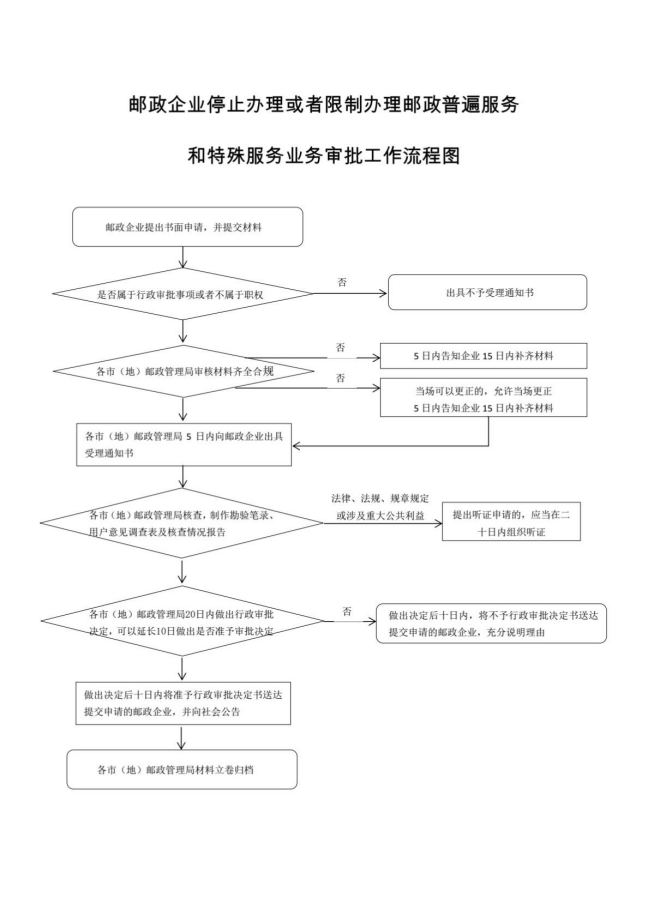 停止辦理或者限制辦理郵政普遍服務(wù)和郵政特殊服務(wù)業(yè)務(wù)審批