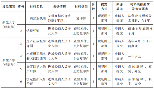 一、事項(xiàng)名稱:我要辦理新生入學(xué)(進(jìn)城經(jīng)商務(wù)工人員隨遷子女)