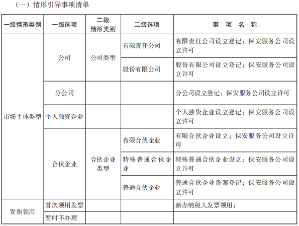營(yíng)業(yè)執(zhí)照2 個(gè)工作日,保安服務(wù)公司設(shè)立許可18 個(gè)工作日,稅務(wù)事項(xiàng)辦理可即時(shí)辦結(jié)。不符合相關(guān)情形,或涉及增值稅專用發(fā)票 (增值稅稅控系統(tǒng)) 最高開票限額審批且最高開票限額十萬元以上的最多需要20 個(gè)工作日。