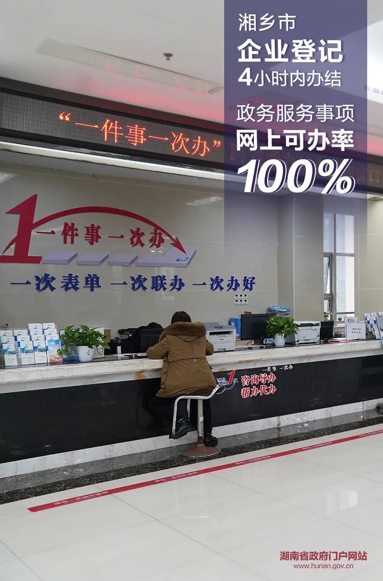 姜女士之所以能夠在短時間內(nèi)辦好工商登記,得益于湘鄉(xiāng)市積極推進“一件事一次辦”改革,探索并聯(lián)審批、容缺審批、代辦審批等模式,推動事項梳理、流程再造和線上線下融合,大幅壓縮審批時限,進一步激發(fā)市場活力。工商登記前置審批事項由310項精簡至35項,企業(yè)登記實現(xiàn)4小時內(nèi)辦結(jié),營業(yè)執(zhí)照、公章刻制、稅票申領(lǐng)的整個流程環(huán)節(jié)壓縮至1個工作日。