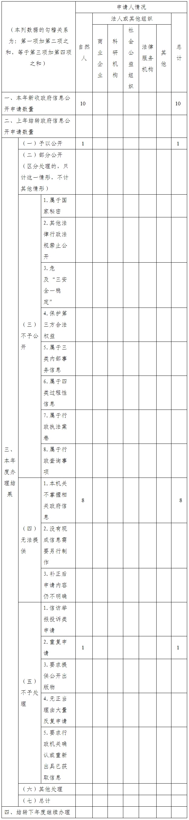 三、收到和處理政府信息公開(kāi)申請(qǐng)情況