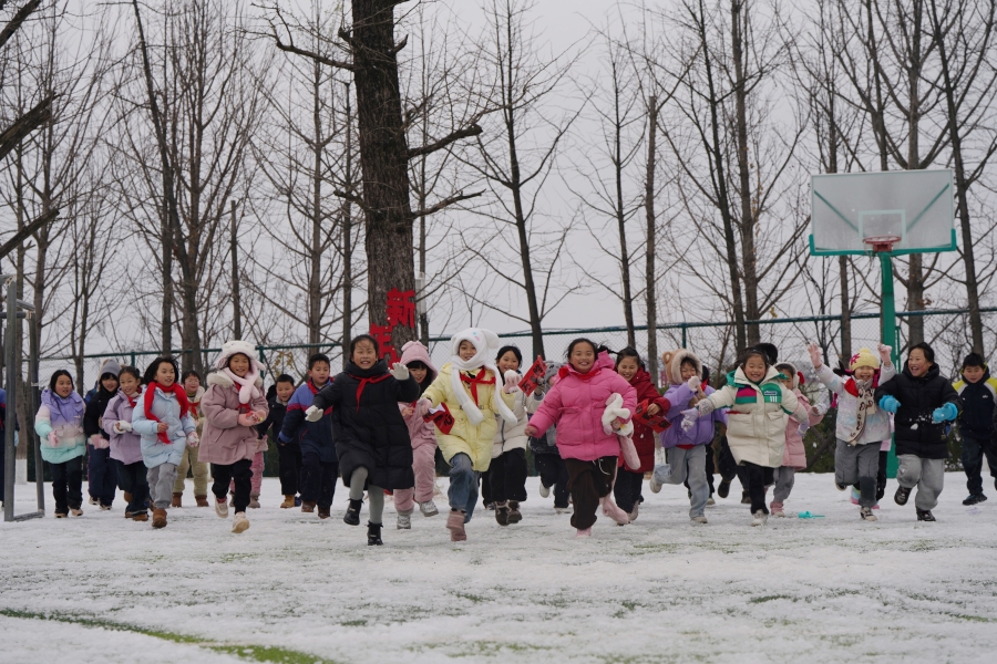 1月21日,雙峰縣曾國藩學校,學生們在課間走出教室,盡情享受玩雪的樂趣。張長慧 攝(湖南圖片庫)