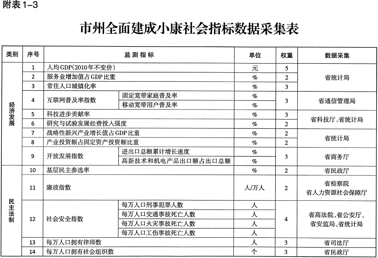 全面建成小康社會(huì)考核納入績效評估體系,實(shí)行“三統(tǒng)一分”,即統(tǒng)一指標(biāo)體系、統(tǒng)一數(shù)據(jù)采集、統(tǒng)一考核評估,分開評定結(jié)果。