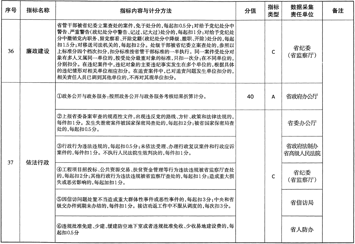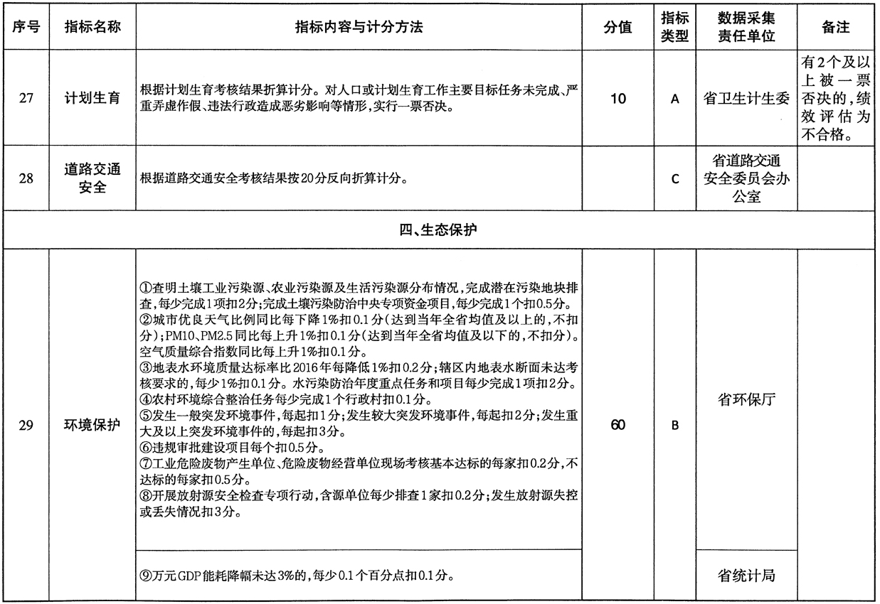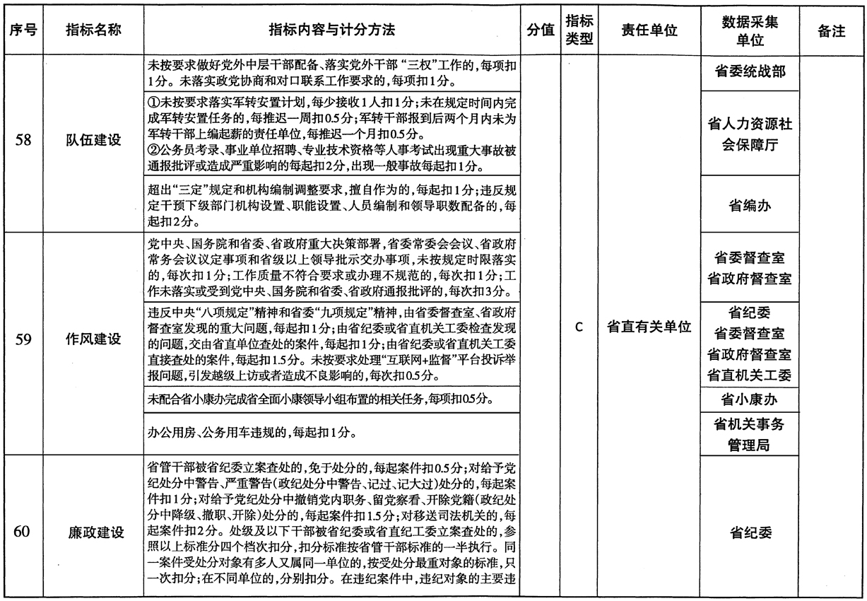 (一)評估內(nèi)容。主要評估各地各部門貫徹黨中央、國務(wù)院和省委、省人民政府決策部署、履行法定職責(zé)的情況,特別是落實(shí)省第十一次黨代會(huì)精神、省委常委會(huì)作出的重大決策部署以及《省政府工作報(bào)告》明確的重點(diǎn)工作任務(wù)情況。