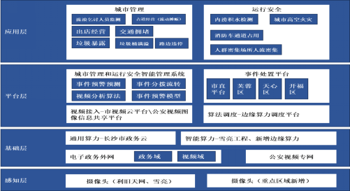 基于長(zhǎng)沙市已有基礎(chǔ)設(shè)施和平臺(tái),總體架構(gòu)包括感知層、基礎(chǔ)層、平臺(tái)層和應(yīng)用層等。
