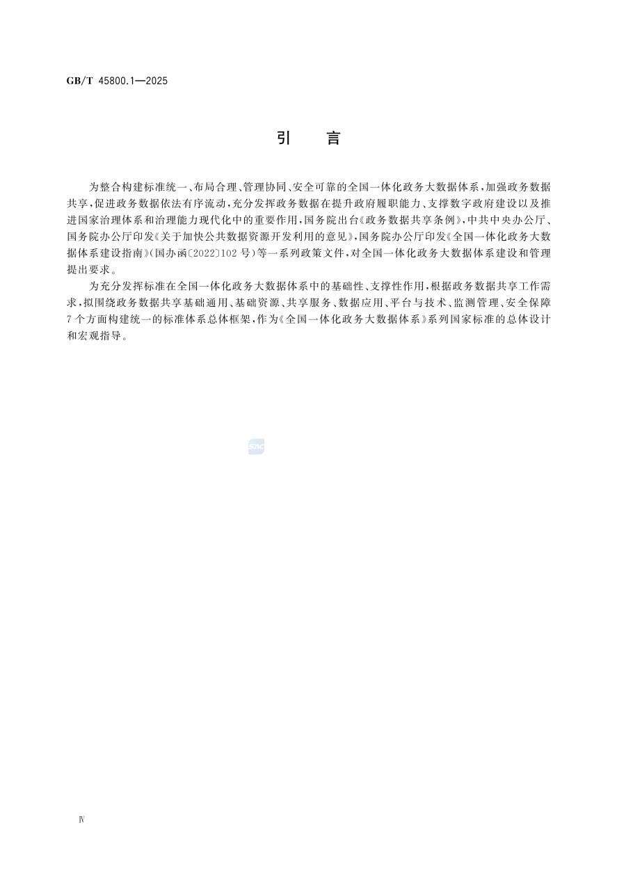 《全國一體化政務(wù)大數(shù)據(jù)體系 第1部分:總體框架》(GB/T 45800.1-2025)