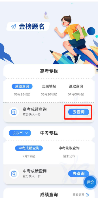 打開“湘易辦”APP/支付寶小程序,點(diǎn)擊首頁金剛區(qū)的“智慧教育”專區(qū)或搜索“高考成績(jī)查詢”服務(wù),輸入考生信息,即可查詢高考分?jǐn)?shù)。